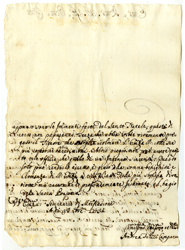 Lettera di Andrea Felice campanaro al cardinale Annibale Albani (1731 dicembre 23)