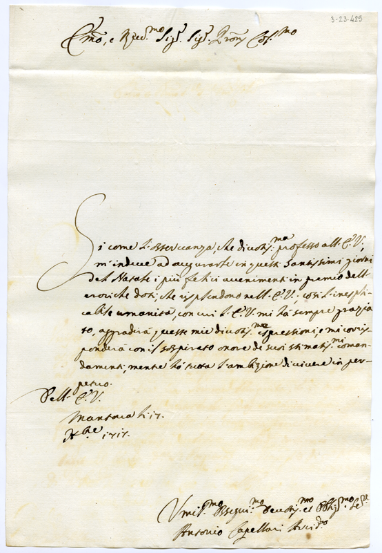 Lettera di Antonio Capellari al cardinale Annibale Albani (1717 dicembre 17)