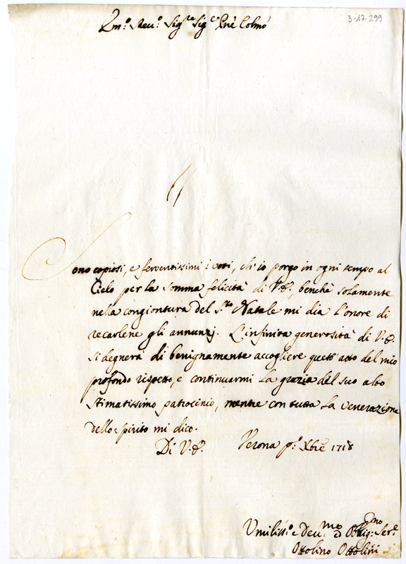Lettera di Ottolino Ottolini al cardinale Annibale Albani (1718 dicembre 1)