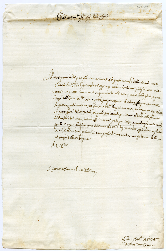 Lettera di Francesco Maria Catena al cardinale Annibale Albani (1729 dicembre 15)