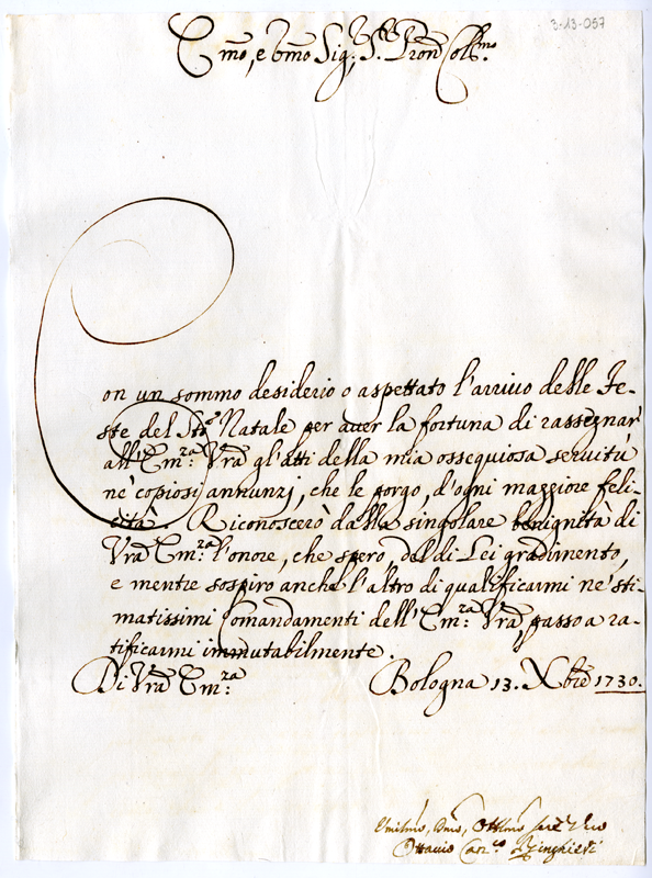 Lettera di Ottavio Ringhieri al cardinale Annibale Albani (1730 dicembre 13)