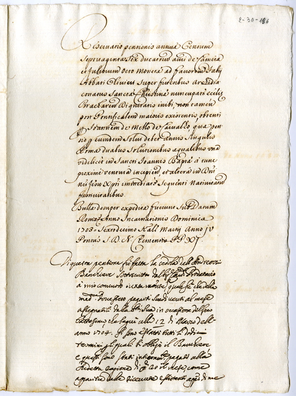 Sulla pensione di 176 ducati annui a favore di Fabio Abbati Olivieri (1704)