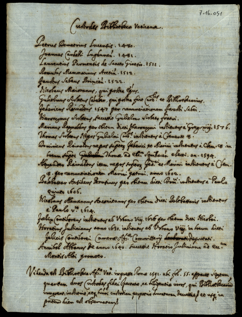 Scritture appartenenti alli Rinaldi custodi della Biblioteca Vaticana