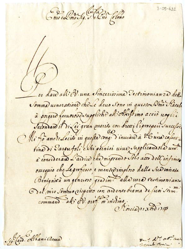 Lettera al cardinale Annibale Albani (1713 dicembre 21)