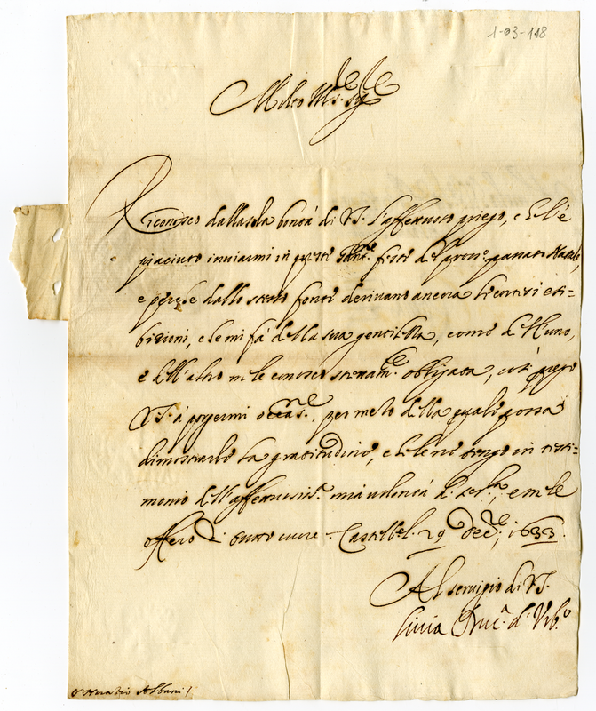 Lettera di Livia Della Rovere (1633 dicembre 29)