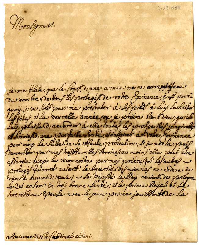 Lettera di B. de Hagen al cardinale Annibale Albani (1720 dicembre 23)