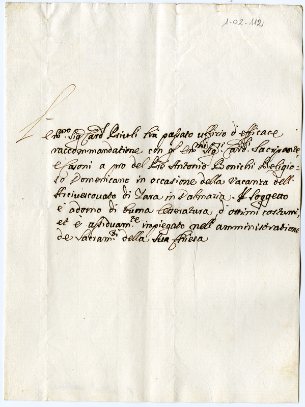 Requisiti di Boninchi Antonio proposto per la vacante chiesa di Zara