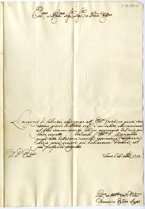 Lettera di Domenico Egidio Rossi al cardinale Annibale Albani (1712 dicembre 16)