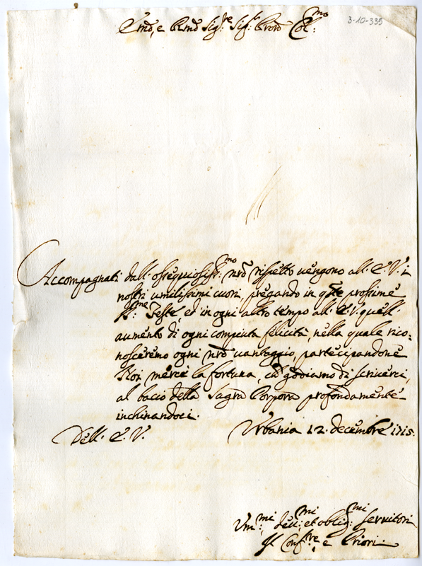 Lettera del confaloniere e priori di Urbania al cardinale Annibale Albani (1715 dicembre 12)