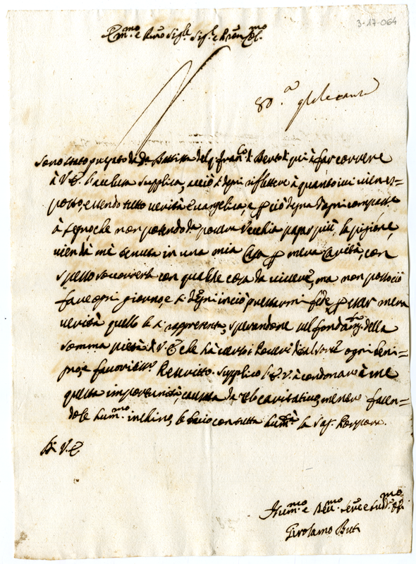Lettera di Girolamo Buti al cardinale Annibale Albani (1718)