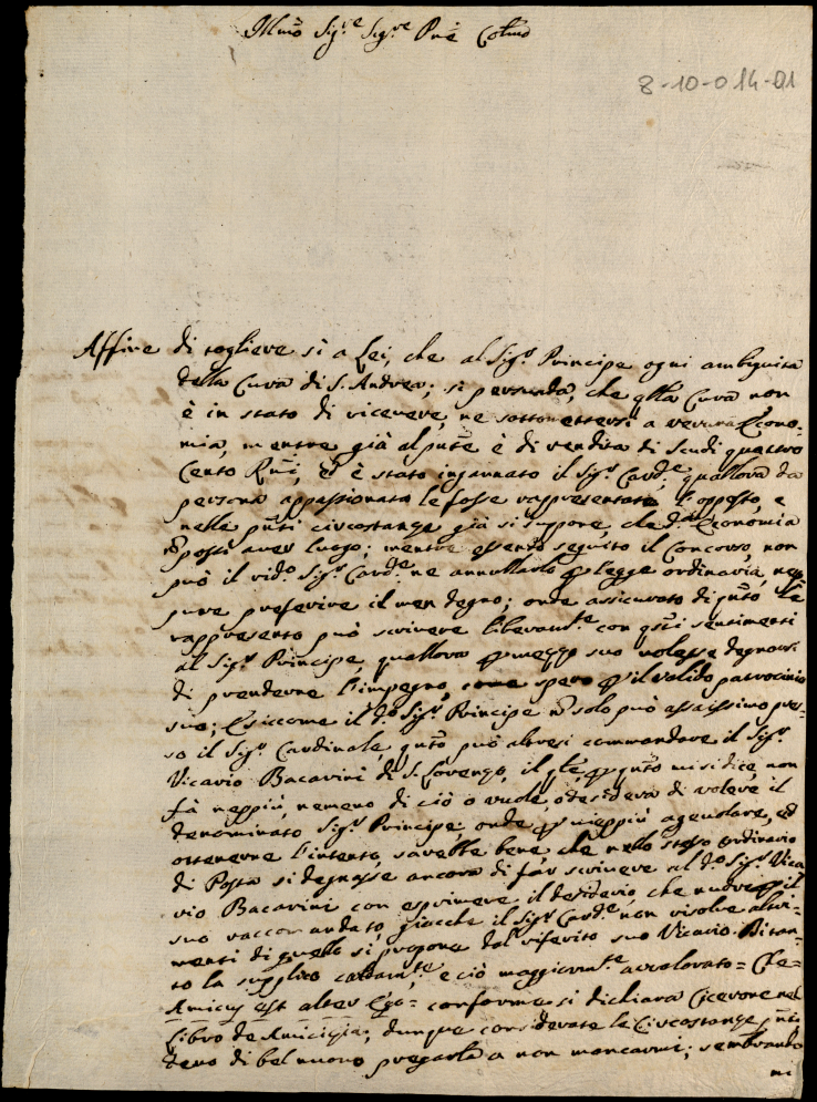 Lettere ricevute in Urbino dal Signor Principe Orazio Albani ultimo di questo nome nell'anno 1767