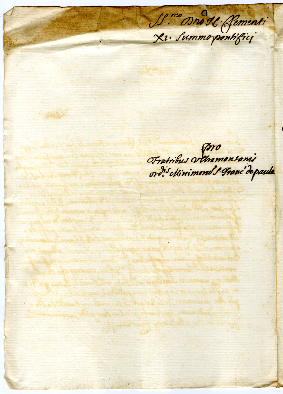 Lettera dei frati minimi di San Francesco di Paola ultramontani a papa Clemente XI (1709)