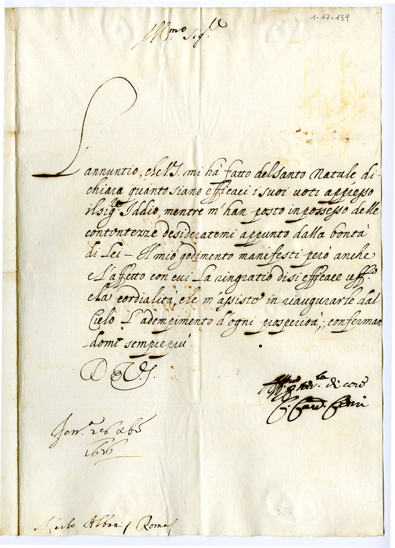 Lettera del cardinale Carlo Cerri a Carlo Albani (1676 dicembre 28)
