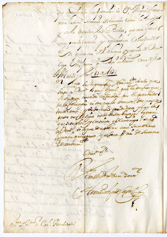 Supplica per parte di don Miguel Guriezo per l'investitura di un canonicato