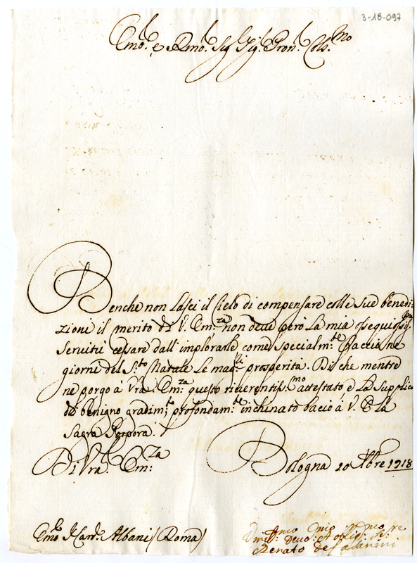 Lettera di Renato de Fasanini al cardinale Annibale Albani (1718 dicembre 20)