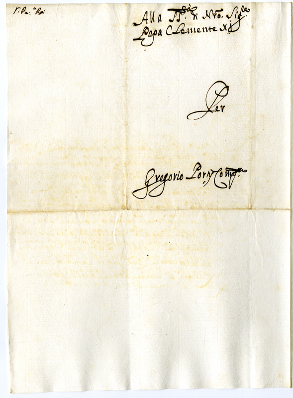 Lettera di Gregorio Portii a Clemente XI (1700-1721)