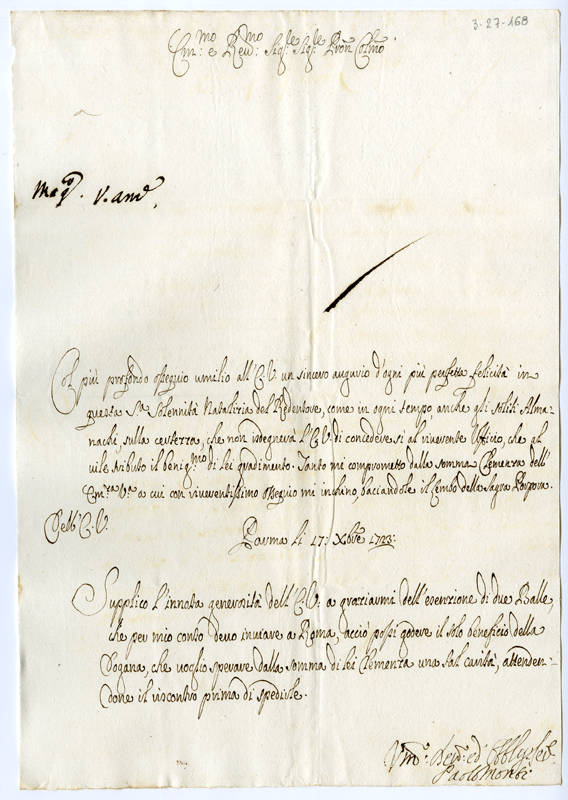 Lettera di Paolo Monti al cardinale Annibale Albani (1723 dicembre 17)