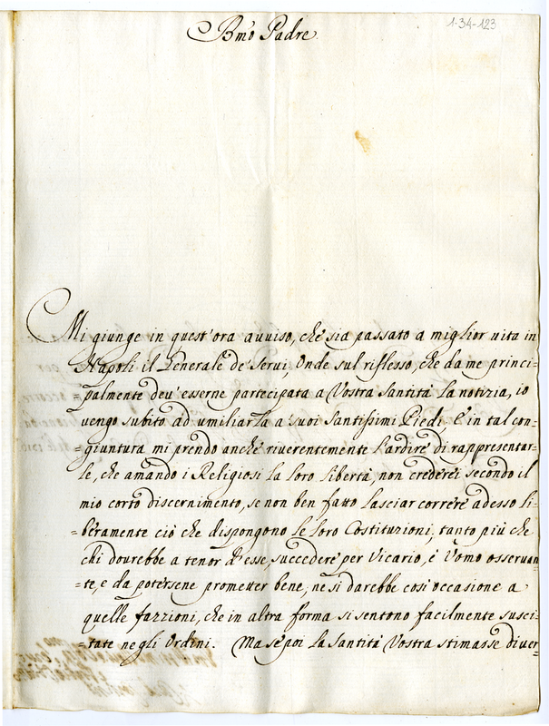 Lettera a Clemente XI sull'elezione del generale dei Servi di Napoli (1716 aprile 19)