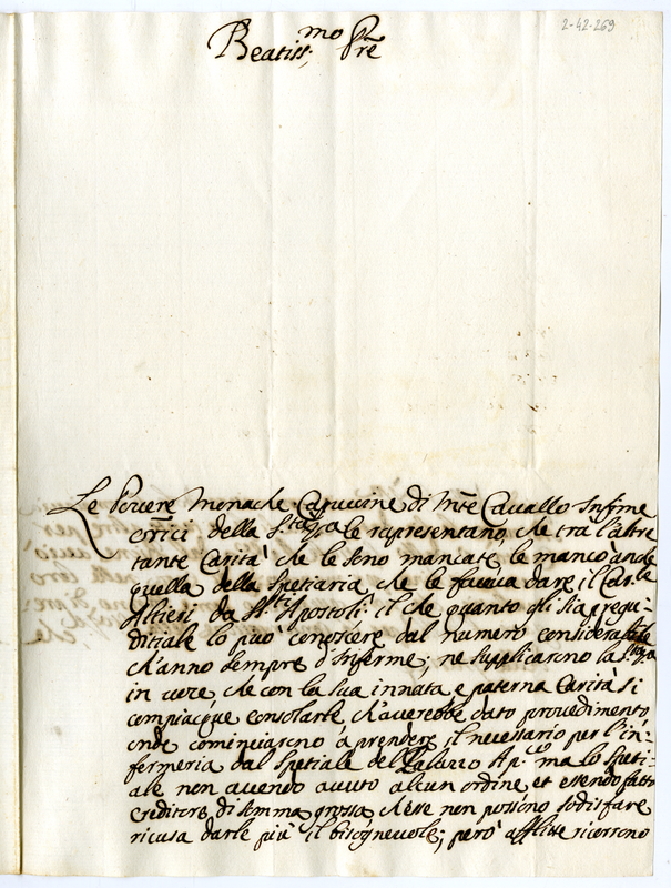 Lettera delle cappuccine di Monte Cavallo a papa Clemente XI (1700-1721)