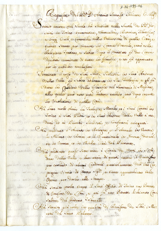 Requisiti di padre Antonio Tommaso Schiara