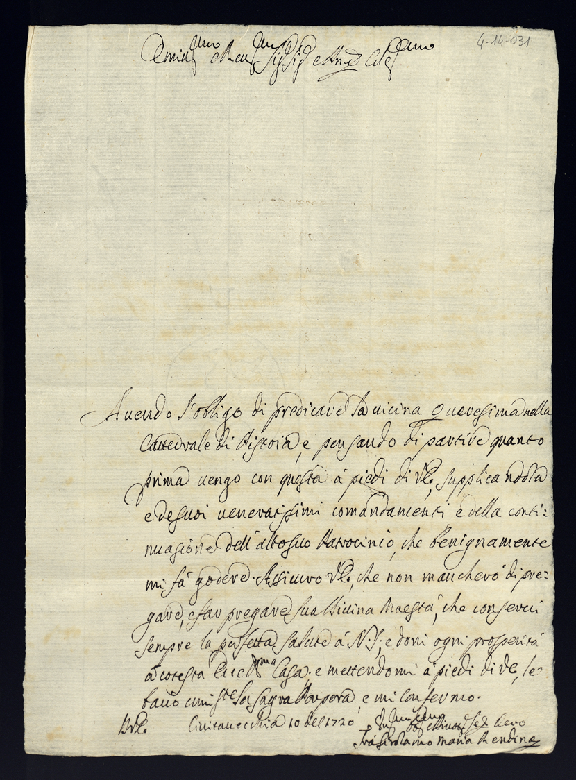 1720. Gennaio. Lettere di complimento e di negozio. Semestre primo