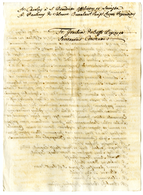 Copia. Lettera di Gioacchino Du Buffé al reverendissimo padre (1720 maggio 25)