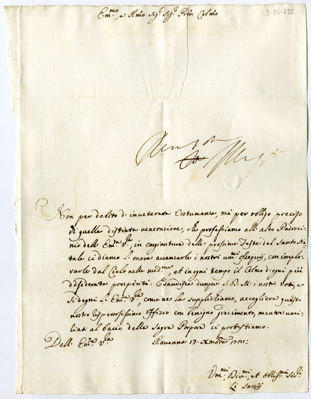 Lettera dei savi di Ravenna al cardinale Annibale Albani (1721 dicembre 13)