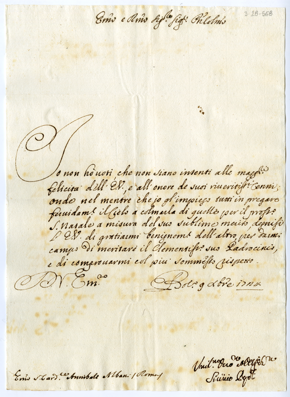 Lettera di Sicinio Pepoli al cardinale Annibale Albani (1724 dicembre 9)