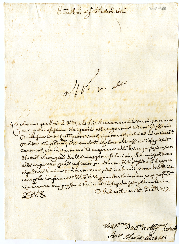 Lettera di Antonio Maria Bracci al cardinale Annibale Albani (1717 dicembre 13)