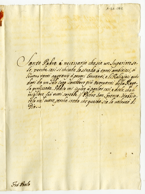 Lettera di fra Paolo a papa Clemente XI (1700-1721)