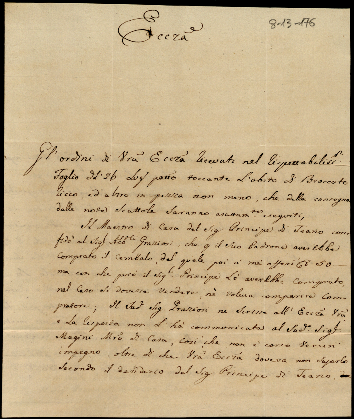 Lettere diverse ricevute in Colbordolo, Pesaro e Senigallia nel 1784