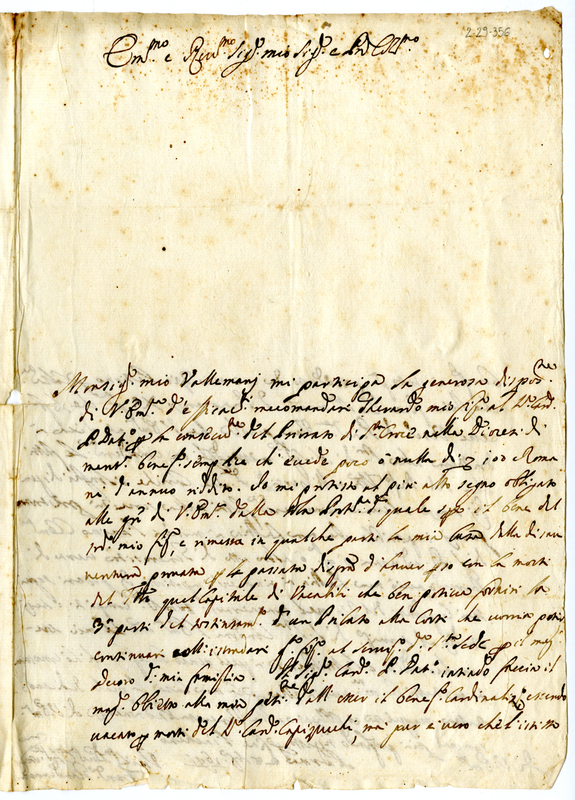 Lettera di Francesco Gindemarin ad un cardinale (1691 agosto 28)