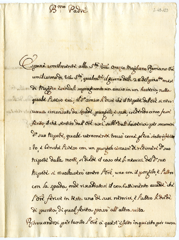 Lettera di Orazio Magliano romano a papa Clemente XI (1700-1721)
