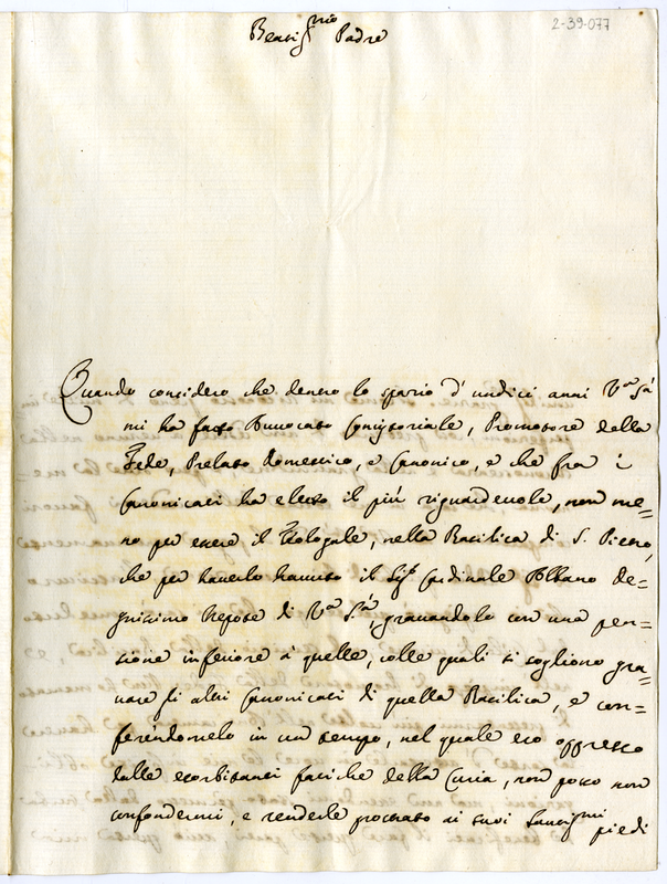 Lettera di Prospero Gamberini a papa Clemente XI (1712 settembre 4)