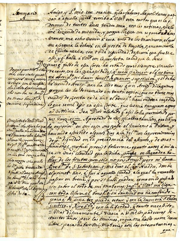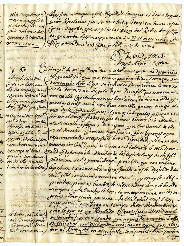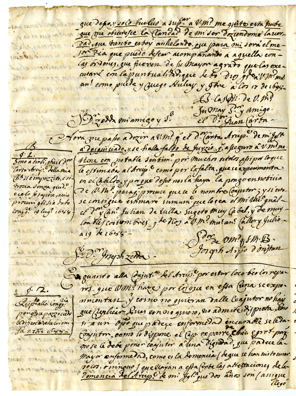 Lettere varie di don Giovanni Carta e di Giuseppe vescovo di Oristano sull'arcipretato chiesto dal canonico Pietro Francesco Marras. Copie (1691-1700)