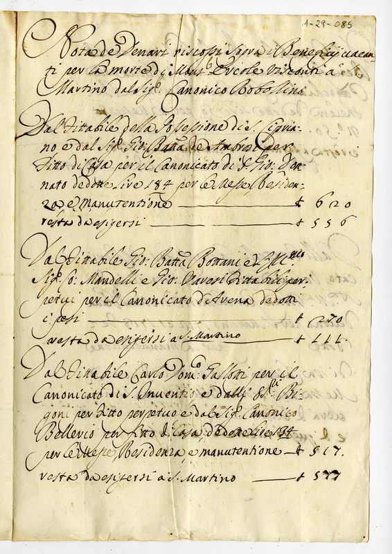 Nota de denari riscossi sopra i beneficii vacanti per morte di mons. Ercole Visconti
