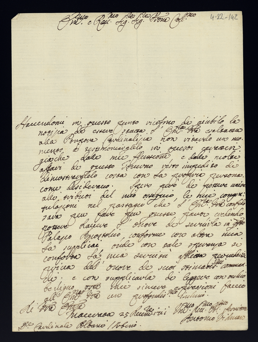 Lettere di congratulazioni per la promozione di Sua Eccellenza al Cardinalato