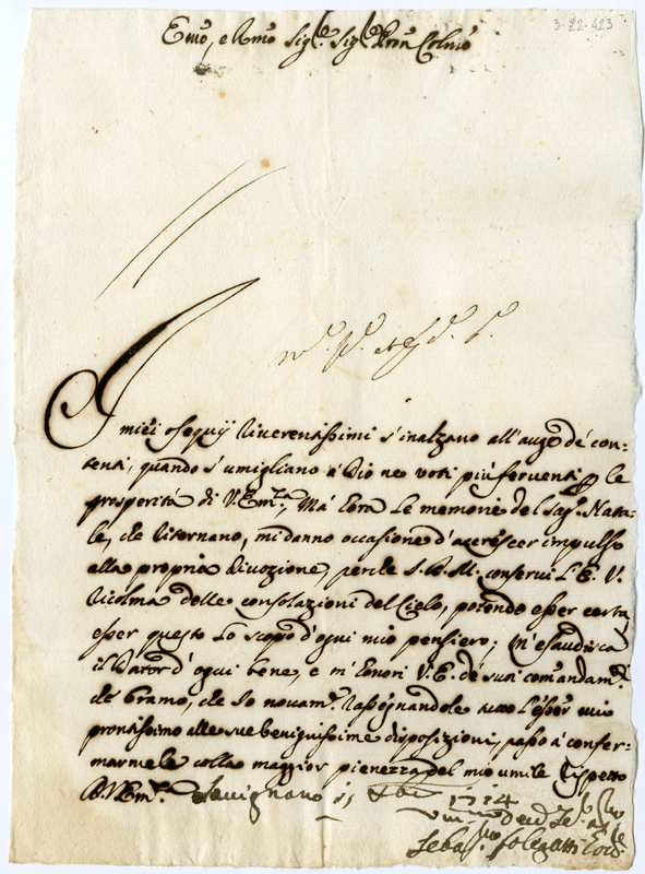 Lettera di Sebastiano Folegatti al cardinale Annibale Albani (1714 dicembre 15)