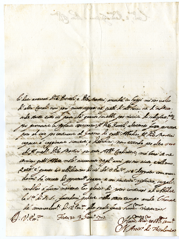 Lettera dell'arcivescovo di Tessalonica (1702 gennaio 3)