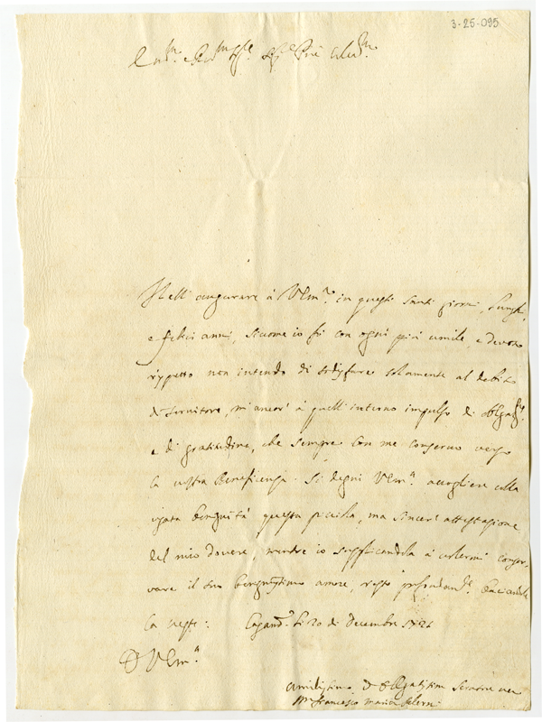 Lettera di Francesco Maria Salerni al cardinale Annibale Albani (1721 dicembre 20)