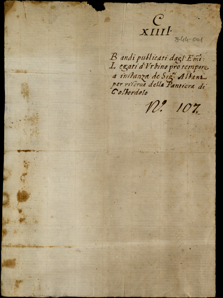 Bandi pubblicati dagli eccellentissimi legati d'Urbino pro tempore a istanza dei signori Albani per riserva della Pantiera di Colbordolo