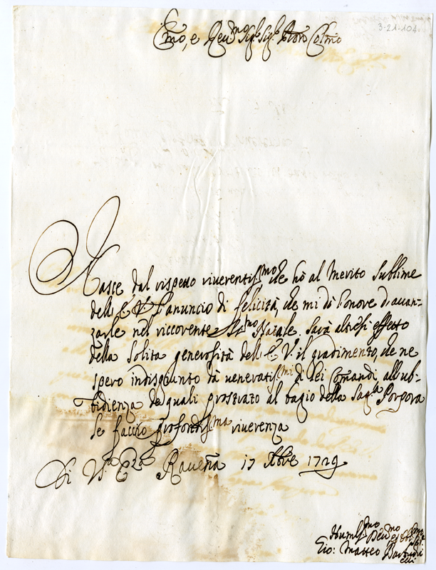 Lettera di Giovanni Matteo Barbuchielli al cardinale Annibale Albani (1729 dicembre 17)