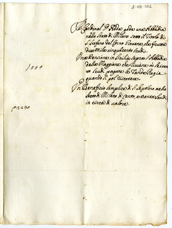 Rendite che gode il cardinale d'Adda (1700-1719)