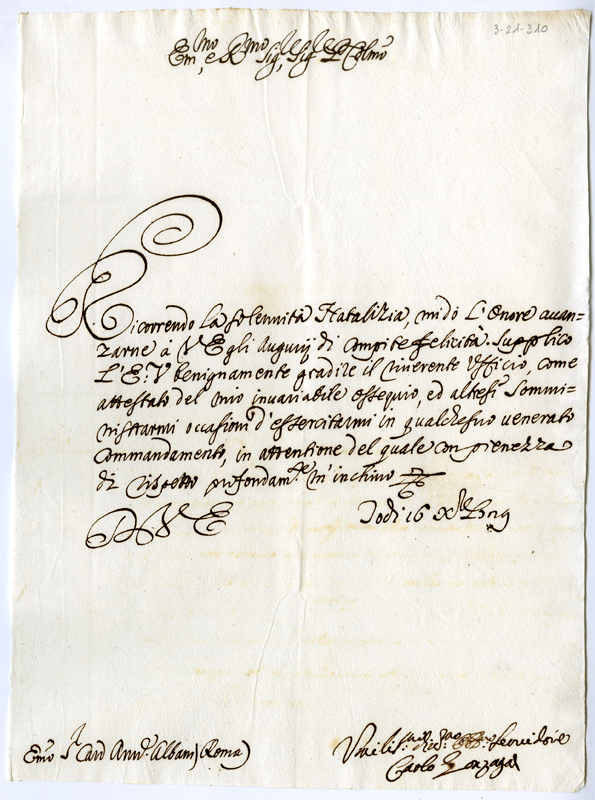 Lettera di Carlo Gonzaga al cardinale Annibale Albani (1729 dicembre 16)