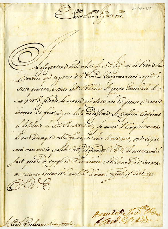 Lettera del cardinale D'Adda al cardinale Prodatario (1698 febbraio 19)