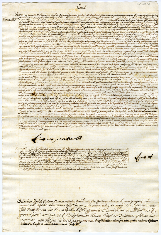 Lettera di Vigil de Quinones Bernardo a Innocenzo XII (1691-1700)