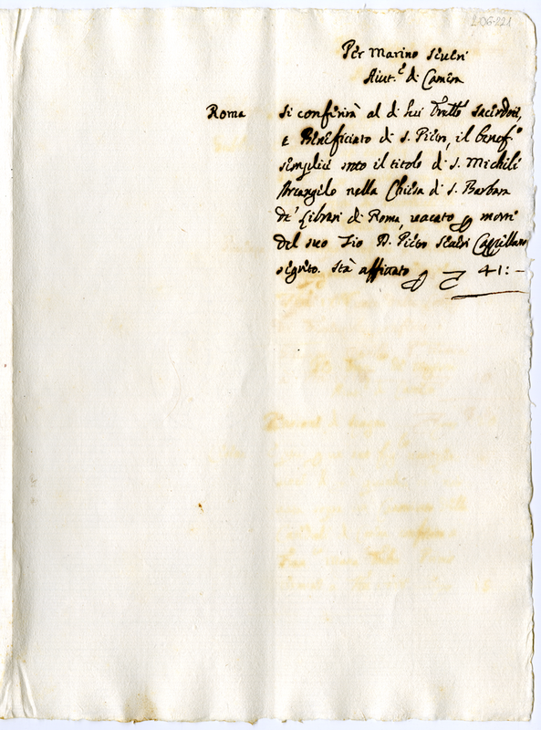 Beneficio per Marini Severi Aiutante di Camera (1700-1721)