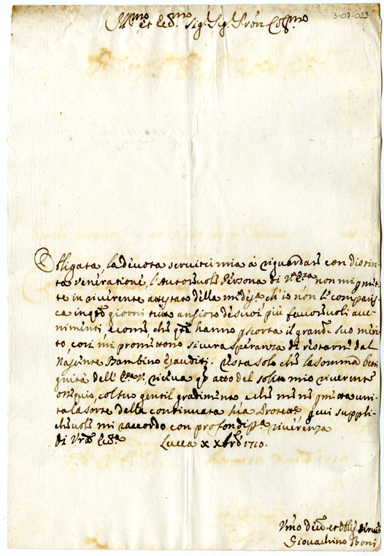 Lettera di Giovachino Boni ad Annibale Albani (1710 dicembre 10)