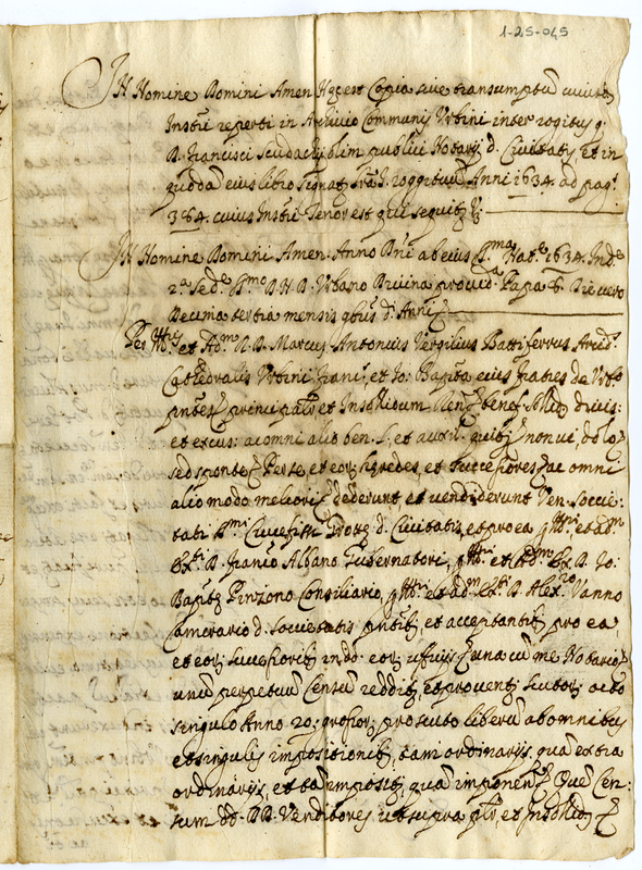 Copia o ristretto di un instrumento redatto nel 1634 trovato nell'archivio del Comune di Urbino fra i rogiti di don Francesco Scudachi pubblico notaio (1673 settembre 24)