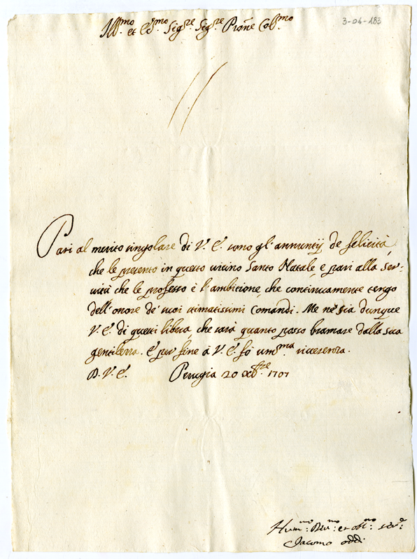 Lettera di Giacomo Oddi ad Annibale Albani (1707 dicembre 20)